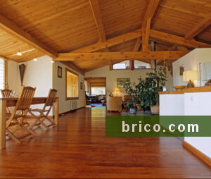 - Revestimiento de abeto teñido miel para interior.